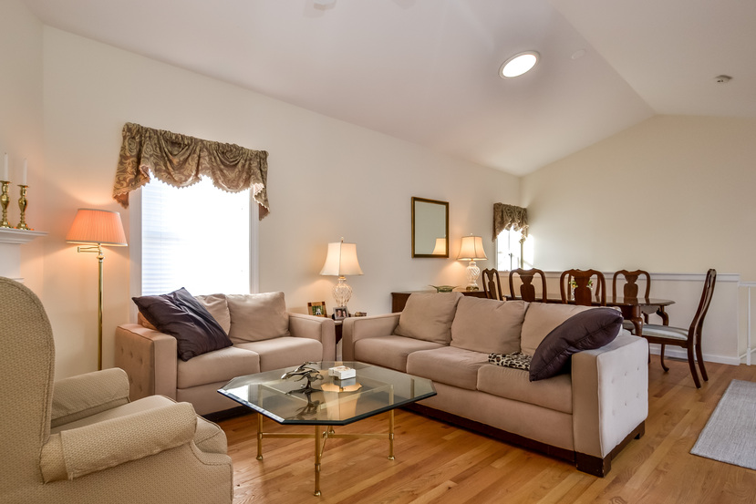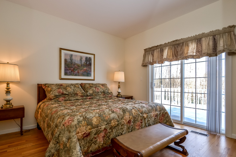 This updated end unit condominium in the Silver Ridge community is a comfortable and inviting home with 2+ bedrooms, 2.1 baths and 2,110 of finished square feet. Enter into the open main living area, complete with hardwood floors, a gas fireplace and cathedral ceiling. The combined living room and dining room lead into the eat-in kitchen, which is outfitted with granite counters and stainless steel appliances. Sliders access a courtyard which brightens up the space and is a convenient place for a grill. Continuing beyond the kitchen, the first floor master suite features a full bath, walk-in closet and private balcony. A second bedroom, full bath, and laundry area complete the main level. Downstairs is even more living space. The lower level is a full walkout, and has lots of windows to make it a bright and inviting space. The finished portion is divided into three areas that could make an ideal family room, office and guest room. There is a half bath in the lower level and an unfinished storage space as well. The condo has gas heat and hot water, and a central air conditioning unit that was recently replaced. There is a one car garage, ample additional parking and security system. This is the last unit on the cul-de-sac and there are no neighbors in sight. It is an Active Adult 55+ community, but buyers of all ages are eligible to purchase this unit.