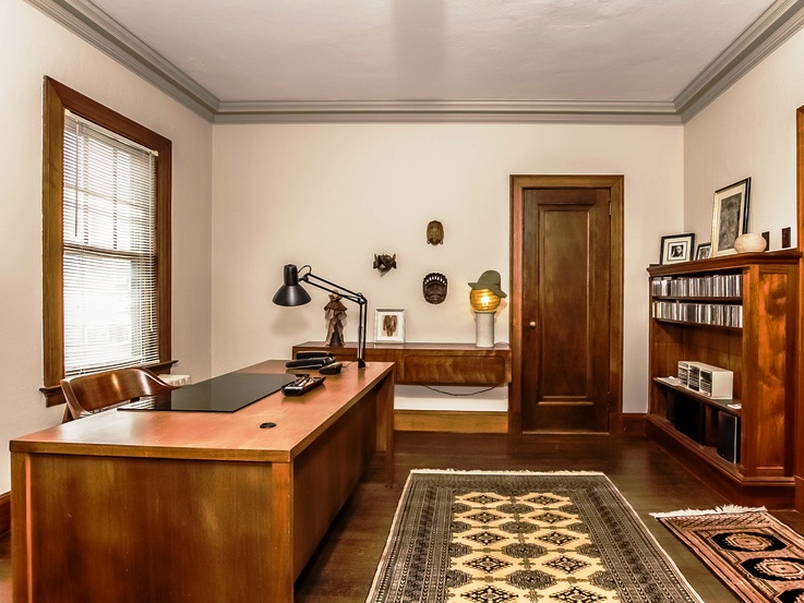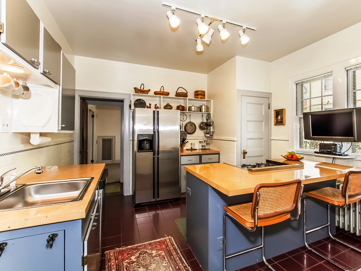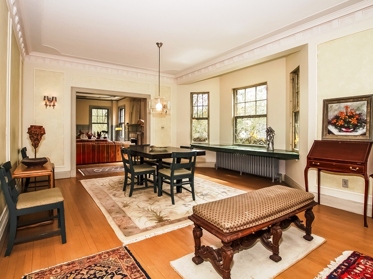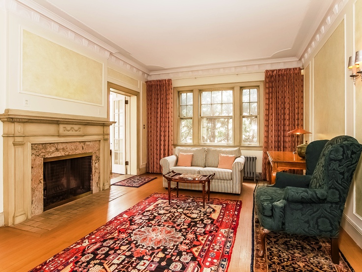 With a fantastic layout for today's living and historic architectural details, this West End home offers the best of old and new. A stunning paneled entry vestibule with marble floor, leaded glass and ornamental ceiling tile is sure to wow your visitors. The first floor powder room is tucked away in this space. Inside, a formal foyer opens to an oversized living room and dining room. An off-set fireplace allows this room to easily accommodate a formal sitting space and formal dining area. Ornate plaster ceiling and wall moldings add architectural interest. A cheerful sunroom with tiled floor and built-in bookshelves adjoins the living room . Beyond the dining room is a striking family room with more ornate plaster work, wainscoting, a fireplace and French doors which lead out to a covered porch with bricked arches. The first floor is completed with a kitchen with eat-in space, butler's pantry, and mudroom with closet space. Upstairs the second floor has five rooms. The master bedroom suite has a walk-in closet, full bathroom with exquisite floor-to-ceiling ceramic tile and plaster molding, and an attached office with built-in bookcases. There are two additional bedrooms and a large laundry room, which could be converted back to a bedroom, if needed. The hallway bathroom also has pristine floor-to-ceiling ceramic tile and unique plaster molding. The third floor has two more bedrooms, a full bathroom, large cedar closet, a bonus room and plenty of closet space for storage. Behind the home you'll find a fully fenced backyard, 2-car garage, covered back porch with bricked arches, patio and gardens full of perennials.