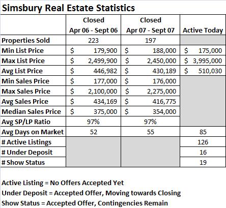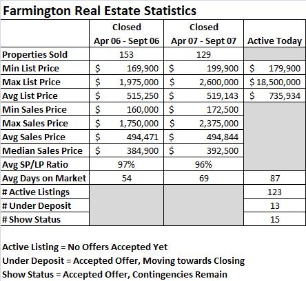 I love data! More real estate statistics, this time for the Farmington Valley. All data is from the MLS for single family residential sales…